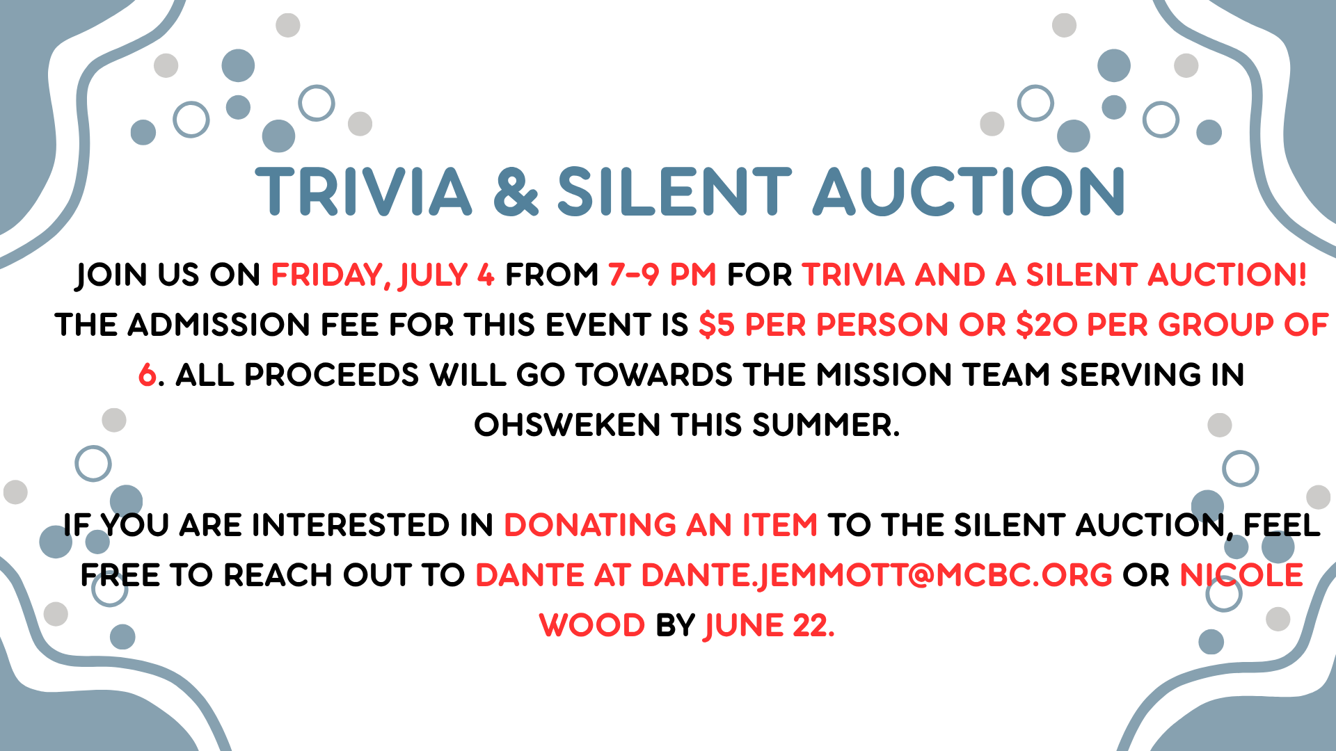 We are pleased to announce the 2023 MCBC Directory! Thank you so much to our team of volunteers who made this directory possible. An electronic version of the directory is available for free, contact info@mcbc.org to receive a copy. A print copy is available at the church office for $6 (please bring exact cash).